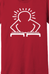 DJ Christmas womens tee inspired by Keith Haring’s A Very Special Christmas artwork, reimagined with a DJ spinning turntables. A tribute to hip-hop, art, and Christmas.
