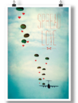This design replaces paratroopers with hearts, with the simple message to spread love not war. Perfect way to show you care.